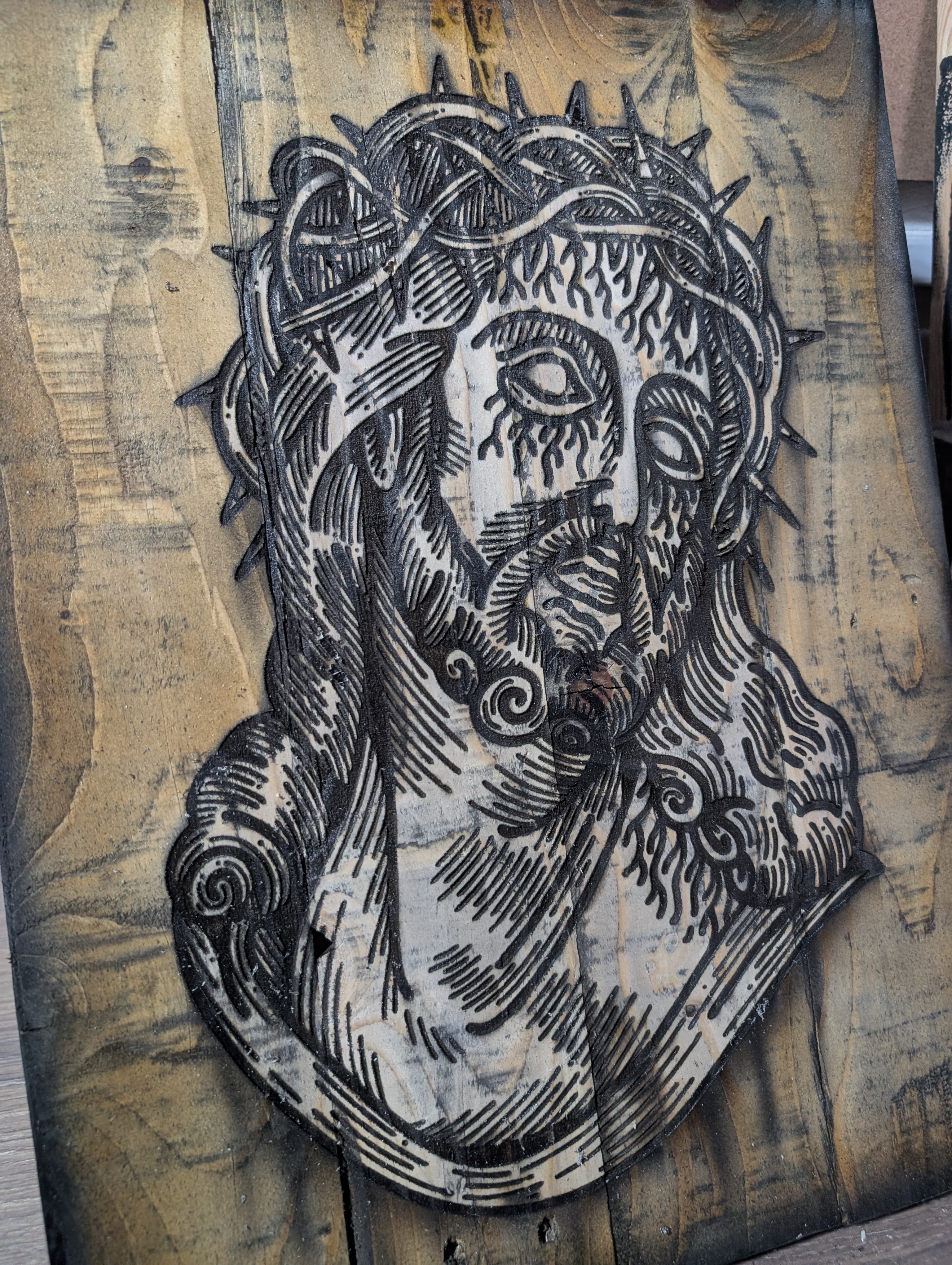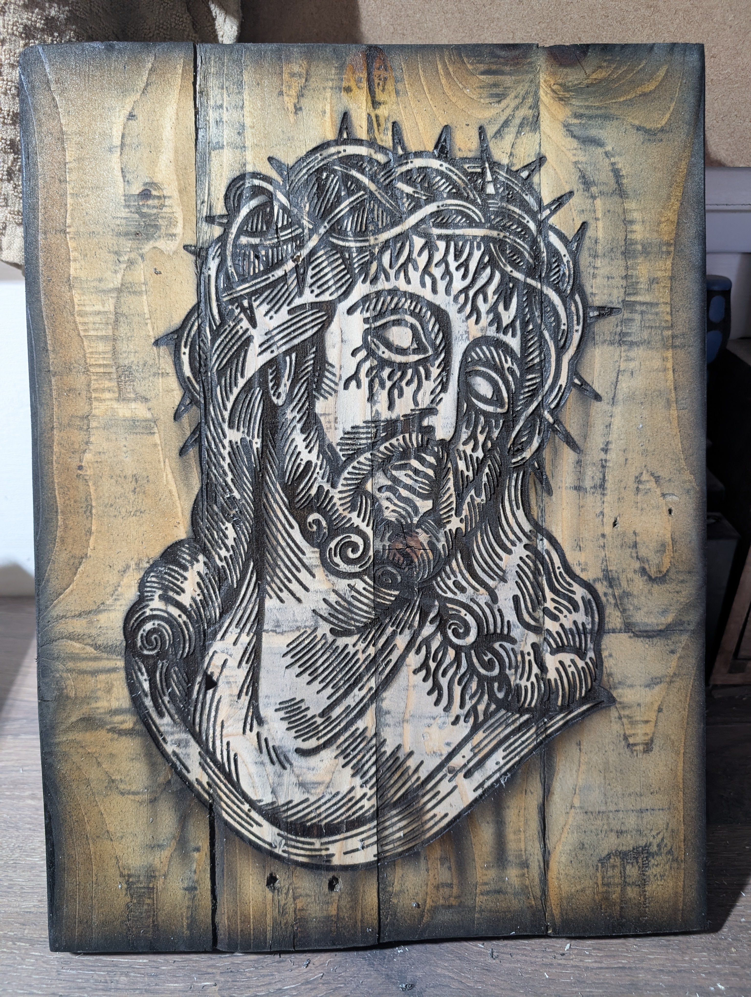 Engraved on reclaimed solid wood, 30cm x 40cm.