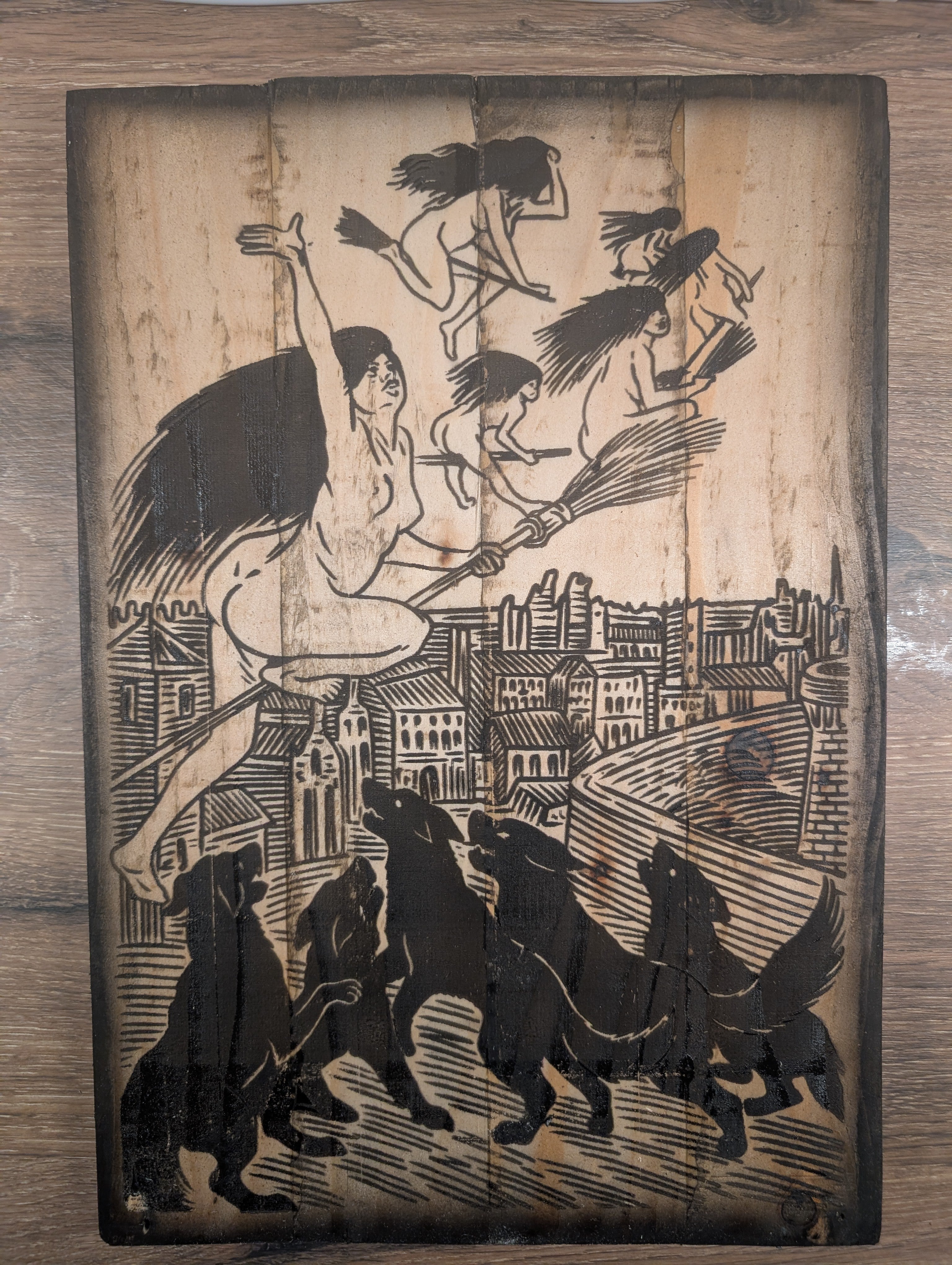 Now engraved in a woodcut style on solid reclaimed wood 40cm x 29cm